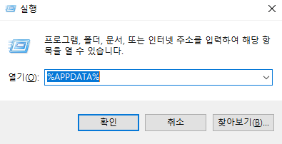 우선 바탕화면에서 윈도우+R 키를 눌러서 %APPDATA%를 입력한 후 마인크래프트 폴더로 들어가 줍니다