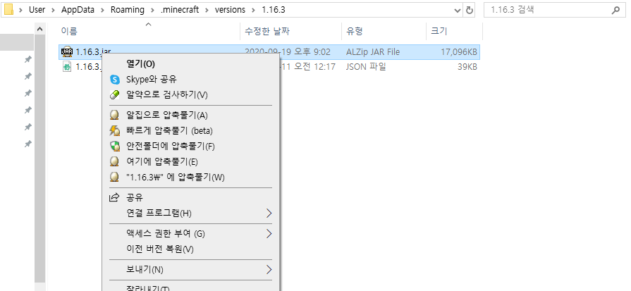 그다음 해당 버전. jar 파일을 오른쪽 클릭을 해서 열기를 눌러주세요!